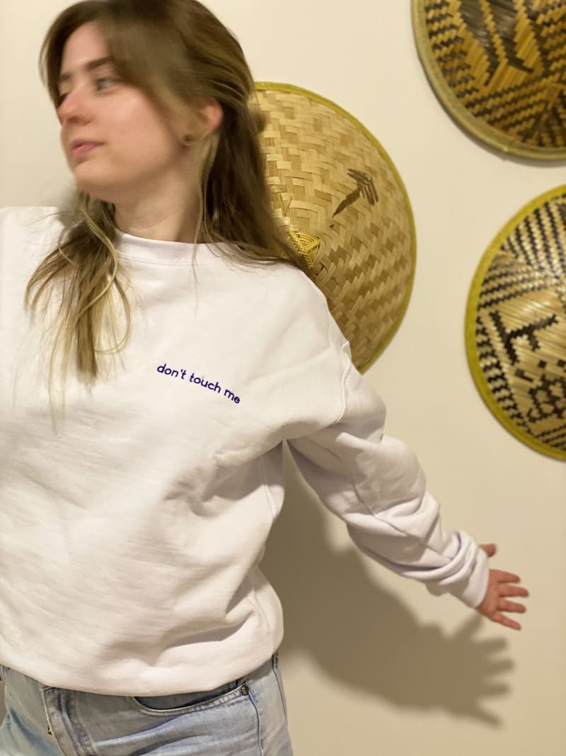 Moletom branco com felpa, gola careca e bordado em azul marinho